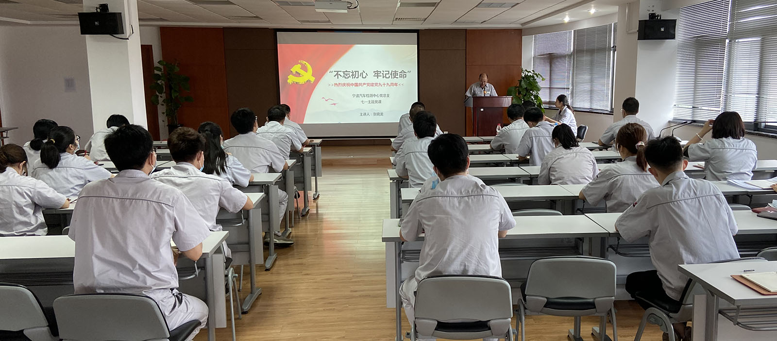 2020年6月23日上午,中汽中心檢測認(rèn)證事業(yè)部寧波汽車檢測中心(以下簡稱寧波中心)黨總支書記張曉龍同志為全體黨員上了一堂精彩紛呈的七一專題黨課。
