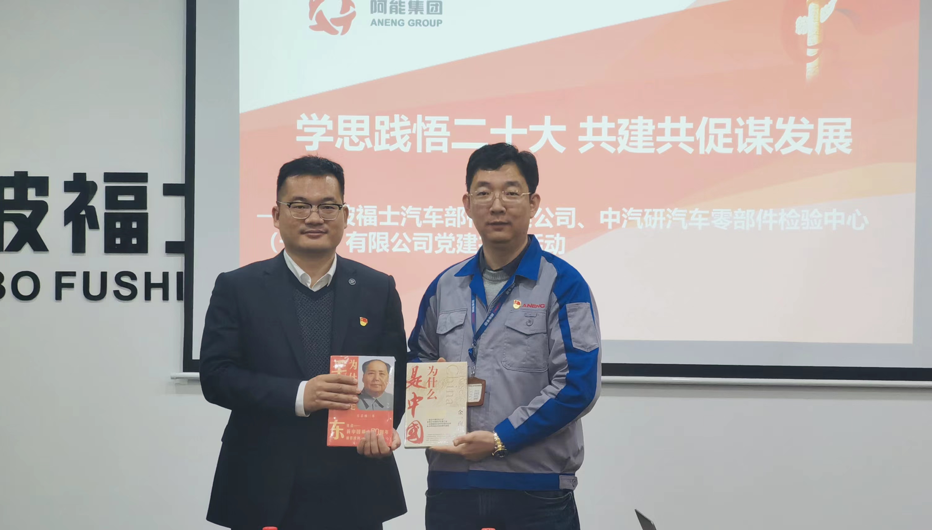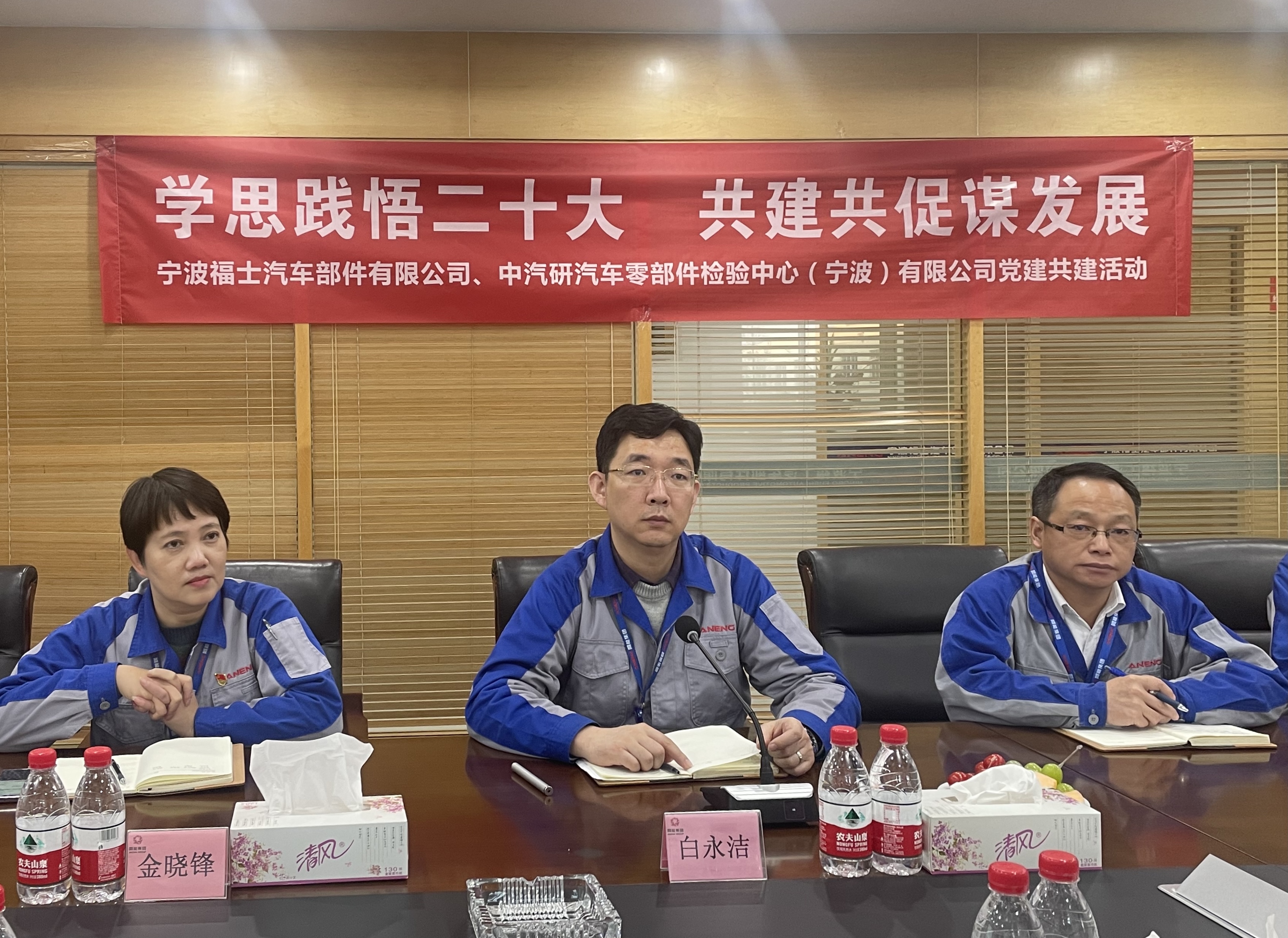 為進(jìn)一步營造黨建共建、合作共贏的良好氛圍,形成黨建工作相互借鑒、相得益彰的良好格局,寧波零部件公司黨支部與寧波福士汽車部件有限公司黨支部于2022年12月6日下午開展“學(xué)思踐悟二十大共建共促謀發(fā)展”主題黨建共建活動。寧波零部件公司黨支部書記曹建驍、寧波福士汽車部件有限公司黨支部書記白永潔及雙方黨員代表出席本次活動。