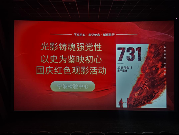 此次國慶紅色觀影活動,不僅讓全體職工直觀、深刻地重溫了那段不容忘卻的歷史,更實現(xiàn)了思想的深刻洗禮與精神的持續(xù)升華。廣大職工將進一步把愛國情、強國志內(nèi)化于心、凝練成魂,切實把精神力量轉(zhuǎn)化為推動寧波檢驗中心發(fā)展的堅定擔當,未來將以更加飽滿的熱情投身于行業(yè)檢測服務,為公司煥新提升發(fā)展注入不竭的精神動力。